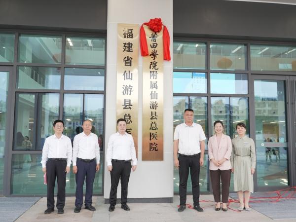 出席领导共同为“莆田学院附属仙游县总医院”揭牌 4月22日下午,莆田学院附属仙游县总医院揭牌活动在仙游县总医院门诊楼举行。莆田学院院长、医学部主任刘明华,莆田学院医学部常务副主任阮志鹏,仙游县委副书记、县长陈志挺,仙游县卫健局党组书记、局长阮美双,仙游县总医院主持党委工作、纪委书记陈素琴,仙游县总医院院长李航共同为“莆田学院附属仙游县总医院”揭牌。 陈志挺代表仙游县委、县政府,对仙游县总医院成为莆田学院非直属附属医院表示热烈祝贺,并向社会各界和一线医务工作者表示感谢。他指出,仙游始终高度重视卫生健康事业发展,此次合作是校地协同的新起点,希望莆田学院持续为仙游医疗卫生事业赋能,仙游县总医院深耕医教研、当好县域医疗领头羊。他表示,仙游县委、县政府将全力护航,助力医院高质量发展。 刘明华在讲话中指出,身为医务工作者与教育工作者,大家肩负着行医与教学的双重责任。他强调,要重视技术创新与临床经验总结,持续提升诊疗水平。他表示,医教研融合是医院未来发展的关键方向,莆田学院将发挥学科和人才优势,支持医院临床教学与科研工作,助力医教研协同发展。