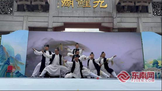 太极表演。九鲤湖管委会/供图 文脉为魂 传承有道 太极扎根乡土间,全民乐享健康风 2025年5月1日,九鲤湖太极文化节精彩上演。武当三丰派第十五代传人明师微道长率团队现场展演玄武拳、伏虎拳等经典拳法,招式行云流水、刚柔并济,尽显太极“以柔克刚、以静制动”的文化精髓。活动还设置互动教学环节,向游客传授八段锦等养生功法,让大家在山水间体悟武术魅力与养生之道,有力推动太极文化传承普及与文旅深度融合,进一步擦亮钟山“太极+康养+文旅”特色品牌。 太极传千载,文脉润万家。钟山镇坚持文化引领、守正创新,组建专业太极队伍、邀请武当名师驻镇传艺,建成仙游县九仙太极文化研究院,构建“名师引领、骨干支撑、全民参与”的传承体系,并积极开展太极“进机关、进校园、进景区、进村居”活动,清晨广场、傍晚步道、景区庭院,处处可见太极身姿,全民习武、全民健身蔚然成风。 从常态化晨练到太极文化旅游节,从公益教学到研学体验,钟山以文化浸润人心、以运动赋能健康,让太极文化成为乡风文明、邻里和谐、身心共养的鲜活载体。