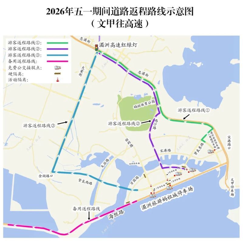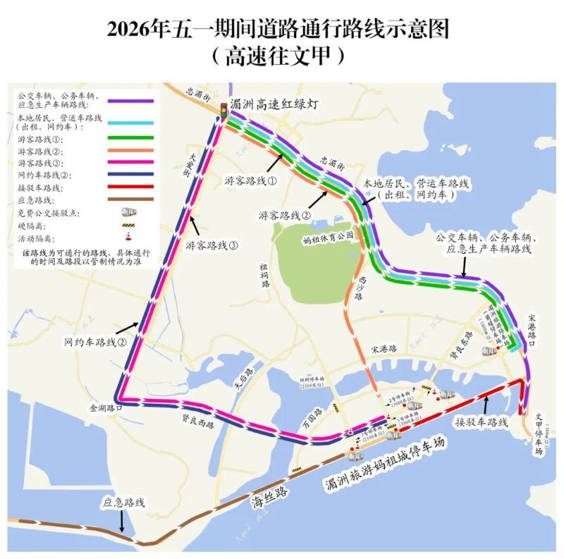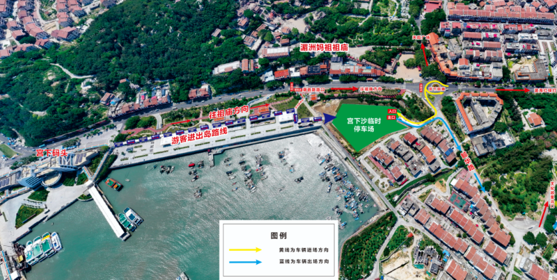假期湄洲岛部分道路临时交通示意图