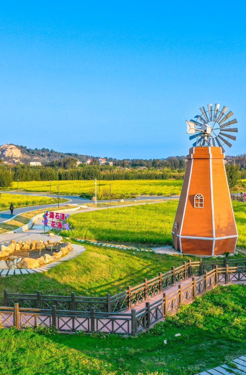 湖石淉生态公园位于湄洲岛中部,毗邻世界妈祖文化论坛会址,总占地面积1000多亩。湖石淉的四季,是浓妆淡抹总相宜的缤纷景象,金色油菜花田旁,风车在悠然地转,还时时伴有白鹭飞掠湖面。