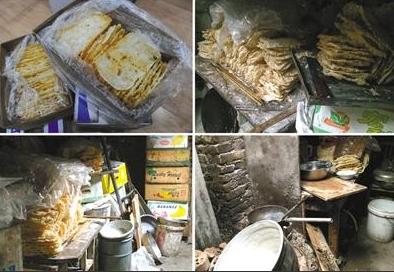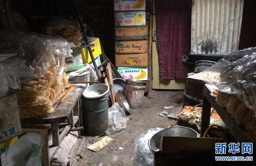 图为位于北京丰台区一个加工薄脆的小作坊。这个小作坊里油锅乌黑、炉渣遍地,各种炊具随处散落,一个个沾满油渍的包装箱堆放在一起,炸好的薄脆四处散放,没有任何遮盖(2月24日摄)。新华社记者 罗晓光 摄