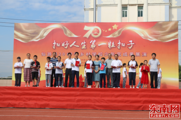2019年仙游县“新时代好少年”颁奖仪式 东南网莆田9月28日讯(本网记者 郑志鸿 文/图)9月27日上午,由莆田市委文明办、莆田市教育局、莆田市财政局主办,仙游县委文明办、仙游县教育局、仙游县财政局承办,仙游县鲤南中心小学协办的“扣好人生第一粒扣子”仙游县2019年乡村学校少年宫成果展演在鲤南中心小学举行。 现场举行2019年仙游县“新时代好少年”颁奖仪式后,活动在开场《十音八乐》大合奏中拉开序幕。莆仙戏《春草闯堂》、街舞《freestyle》、体育串烧等一个个精彩的节目,赢得台下阵阵喝彩。 此外,现场还举办乡村学校少年宫成果图片展,20块展板展示仙游县各乡村学校少年宫近几年活动开展成果,并展出2019年仙游县12名“新时代好少年”(2名市级、10名县级)的先进事迹。