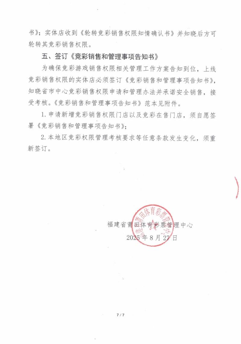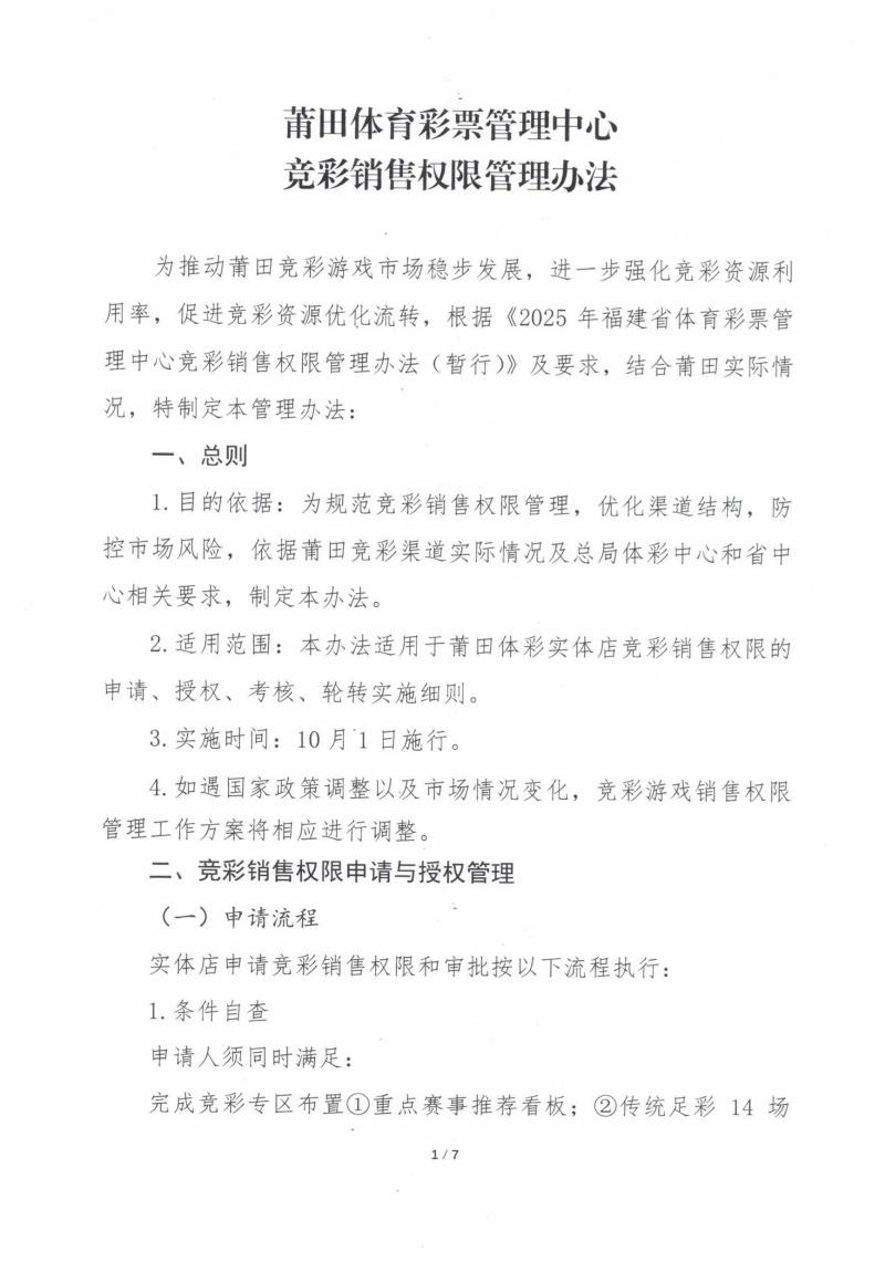 公告:2025年莆田体育彩票管理中心竞彩权限管理办法