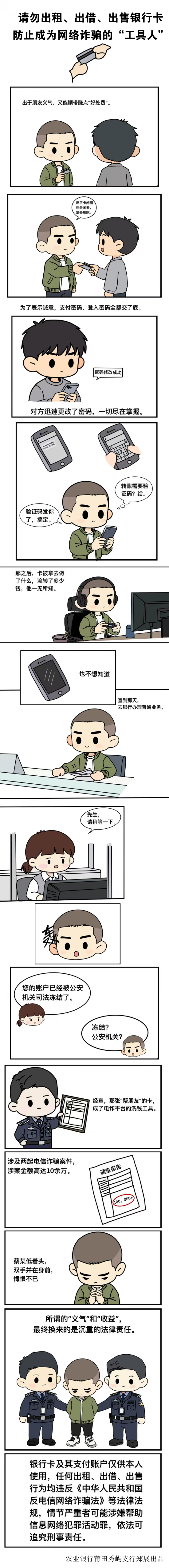 原创漫画|农行莆田秀屿支行:请勿出租、出借、出售银行卡 防止成为网络诈骗的“工具人”