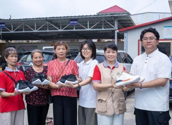 为留守老人送上特殊定制的爱心鞋。 东南网莆田8月4日讯(通讯员 林志荣 吴伟锋 文/图)暑期,湄洲湾职业技术学院鞋类专业师生携手福建辉腾鞋业开展暑假公益实践活动,为仙游县郊尾镇埕边村82位留守老人送上定制爱心鞋,并现场开展脚型数据采集与足部健康义诊。此举既为留守老人送去了关怀,又为学生搭建了“学以致用”的实践平台,更推动企业履行社会责任,形成了“院校育人+企业赋能+多方受益”的良性循环,充分发挥职业教育在乡村振兴中的作用。 活动现场,12名学生分成3个服务小组,分别负责脚型测量、健康咨询和鞋品发放。“鞋子合不合脚,只有脚知道。老人家随着年龄增长,脚部会出现骨质增生、足弓塌陷、脚趾变形等变化,普通鞋款很难适配。”该学院鞋类专业教师许松青一边指导学生操作,一边向村民解释。现场展示的脚型数据平台清晰显示,此次受助的82位老人中,65%存在拇指变形外翻、脚底着地点磨损等足部问题,其中重度变形者占12%。许松青说,现场的脚型数据采集不仅是为老人提供舒适鞋款的基础,还是学生专业实践的重要环节。 此次捐赠的爱心鞋专门针对这些问题设计:防滑橡胶鞋底纹路加深增强抓地力,鞋头加宽避免挤压脚趾,鞋面采用透气网布面料减少闷汗,后跟处的弹性海绵垫更是能缓冲行走压力。学生们将课堂所学的制鞋工艺、人体工学知识转化为实践能力,从鞋型设计、制板研发到成品成型全程参与。“每一道工序都要考虑老人穿着的舒适度,这种带着温度的实训让我们对专业有了更深的理解。”参与制作的鞋类专业学生柯炫杰说道。拿到免费赠送的爱心鞋,现场好几位老人迫不及待穿上新鞋,反复试走,感慨地说道,这鞋头不挤脚,走路也不打滑,比集市上买穿的舒服。