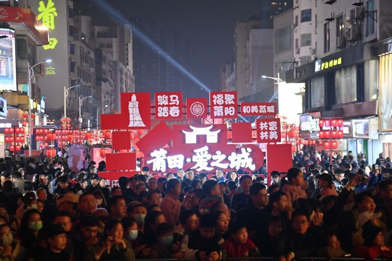 “欢腾年俗在荔城”天天有节目。卢德山/摄 东南网莆田2月9日讯(本网记者 吴炳端)从2月1日起,莆田文献步行街(文献路新街口至金鼎广场段)正式启动全天候步行体验,一直持续至2月25日;2月6日晚,“莆阳开春·潮起兴化”2026年莆田市春季文旅活动、“购在中国·全闽乐购”首届莆田优品年货节、“欢腾年俗在荔城”系列活动在古谯楼广场同步启幕。 当古老的谯楼再次被灯光点亮,当鼎沸的人声与熟悉的烟火气重新漫溢街头,不少市民纷纷感慨:那条承载着无数记忆的步行街回来了,那份魂牵梦绕的“年味”也一并回来了。